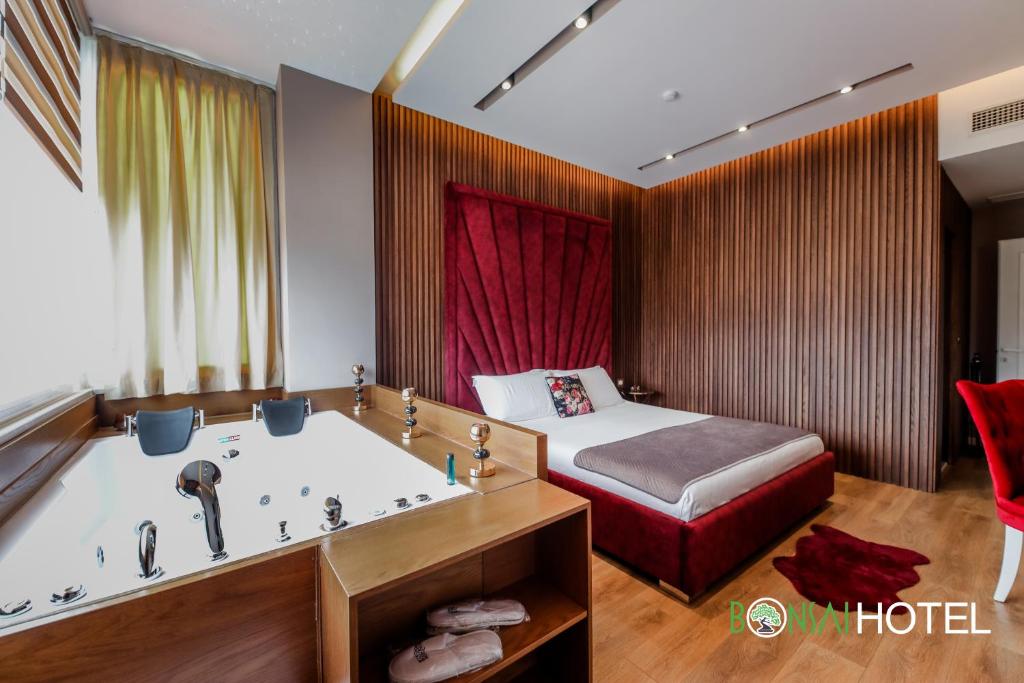 Situated in Tirana, 7.6 km from Skanderbeg Square, Hotel Bonsai features accommodation with a garden, free private parking, a terrace and a bar. With free WiFi, this 4-star hotel offers room service and a 24-hour front desk. Rock of Kavaje is 49 km away and Postbllok - Checkpoint Monument is 4.3 km from the hotel.